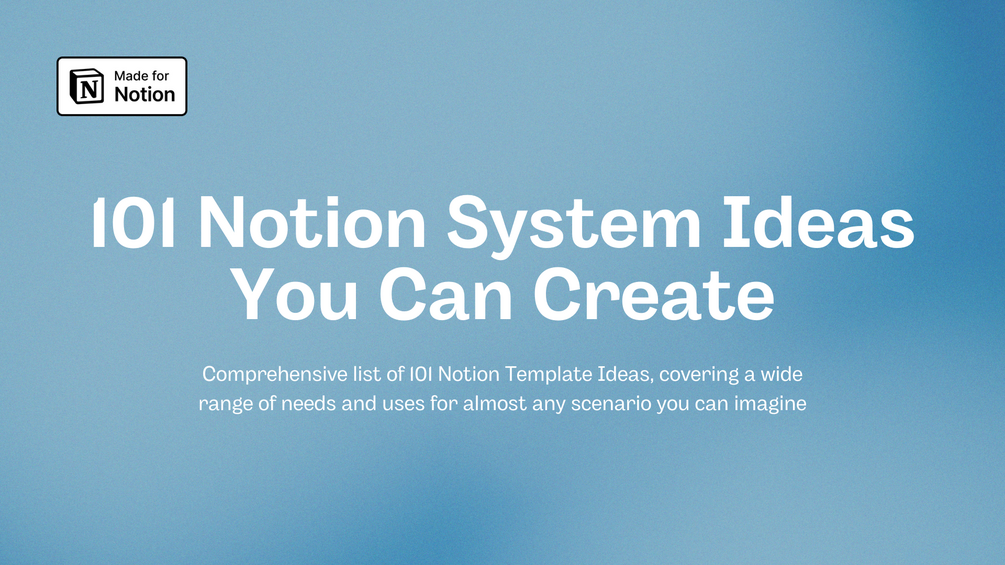 A comprehensive list of 101 Notion Template Ideas, covering a wide range of needs and uses for almost any scenario you can imagine!