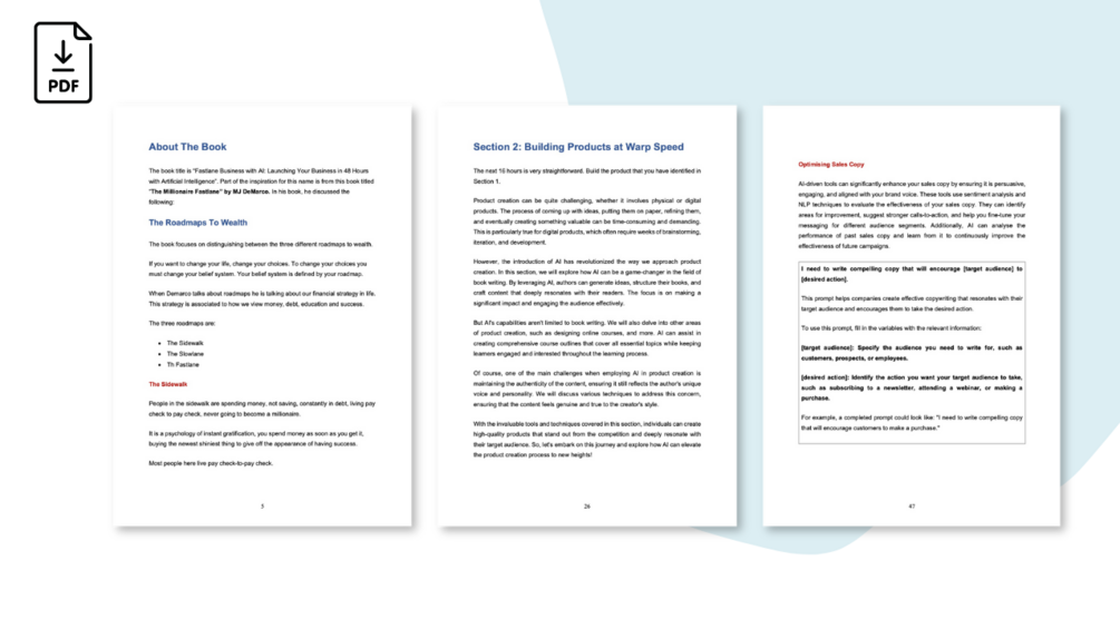 Within a single weekend, you could be launching your own product, complete with captivating sales copy, and a plan to sell – all powered by the incredible capabilities of AI.