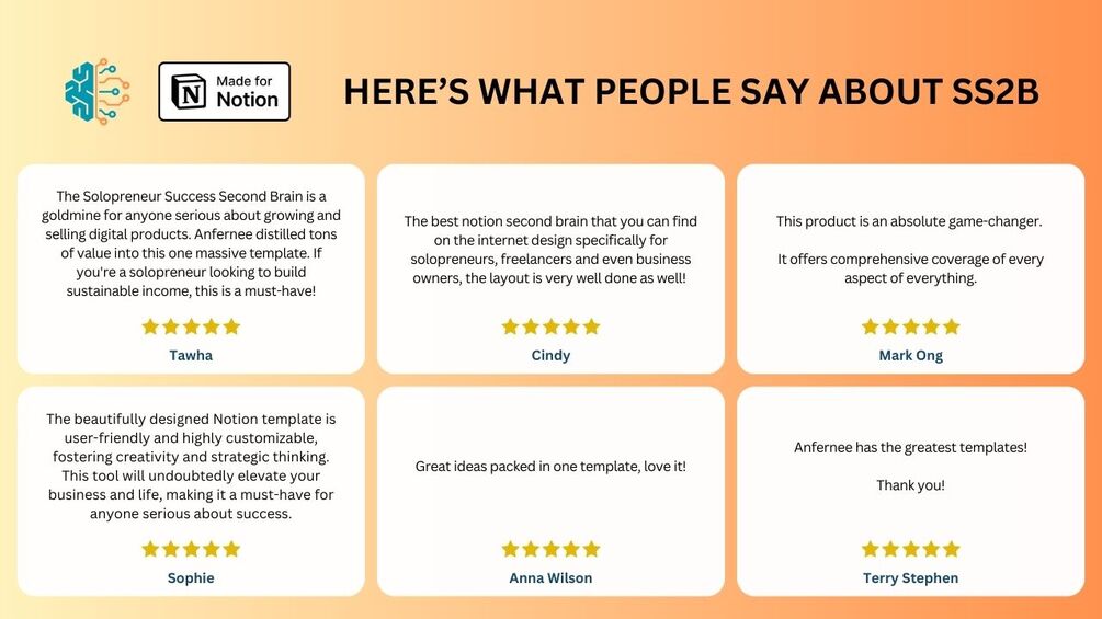 - Lifetime updates on Solopreneur Success Second Brain (SS2B) - Huge value!