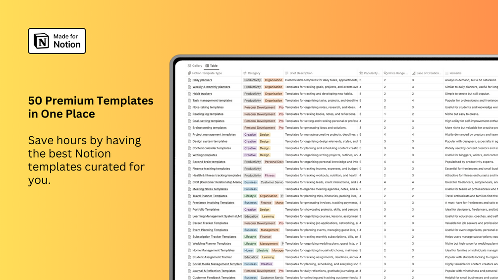 Whether you’re looking to create the next best selling Notion Template, or simply looking around for excellent Notion Template ideas, this guide has you covered.